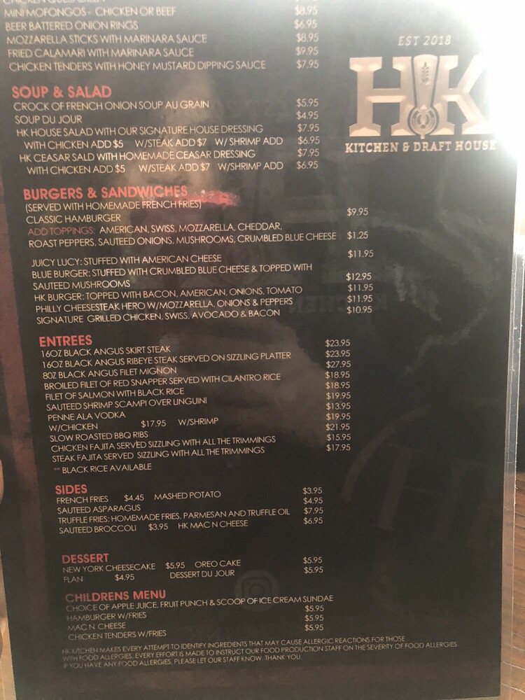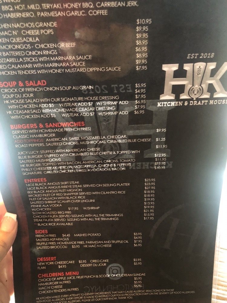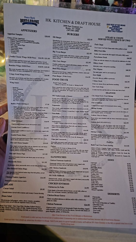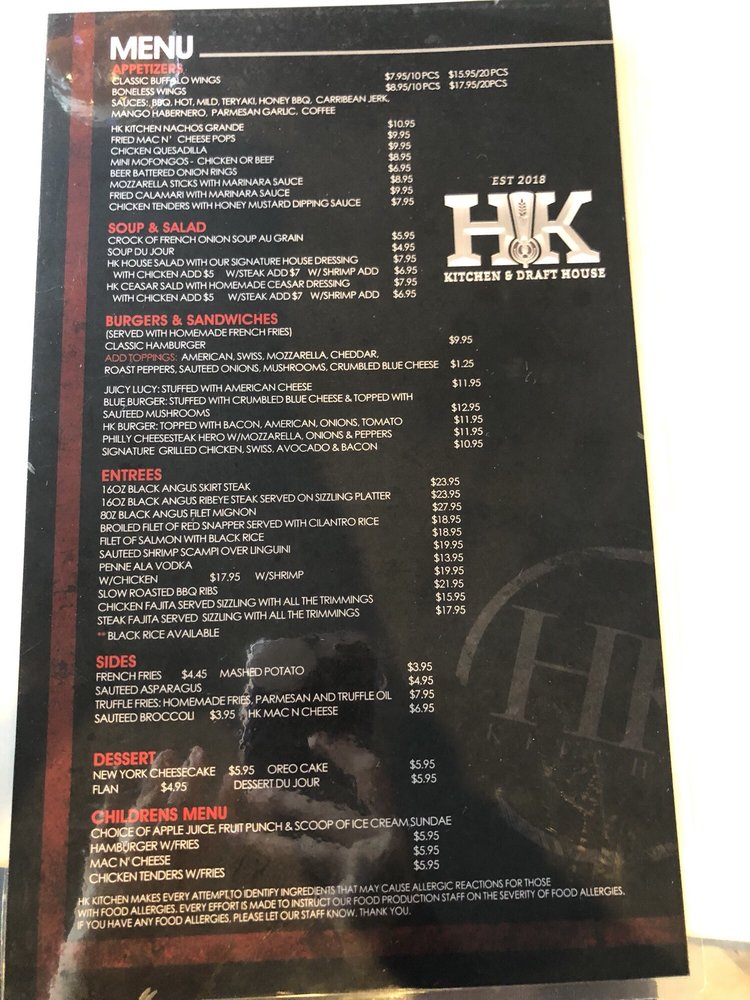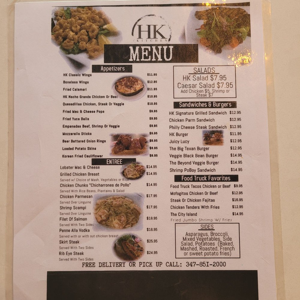 HK Kitchen & Draft House is a trendy bar in Bronx, NY, offering a wide range of American dishes, with a focus on chicken wings. The restaurant is wheelchair accessible and has outdoor seating for a casual dining experience. With options for vegetarians and a variety of beers, including Bud Light and Heineken, there's something for everyone. The menu features classic and boneless wings, fried calamari, and HK Nacho Grande. The atmosphere is perfect for group dining, with happy hour specials and a full bar. The Latinx-owned establishment also offers catering services and has a pool table for entertainment. Don't miss out on their weekly rotating IPA selection, including Far Out There DIPA and Steve Austin's Broken Skull IPA. Overall, HK Kitchen & Draft House offers a unique dining experience with delicious food and a vibrant atmosphere.